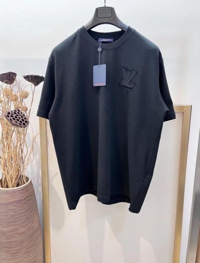 بلوزة نصف كم مريحة للرجال لويس فيتون بشعار مطرز لون أسود