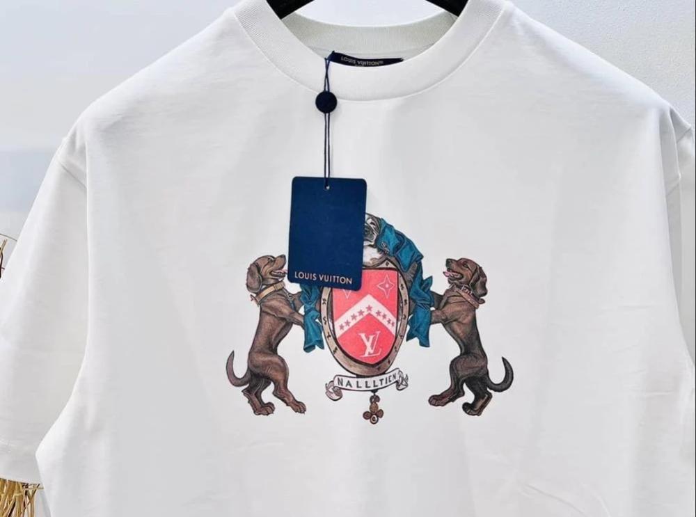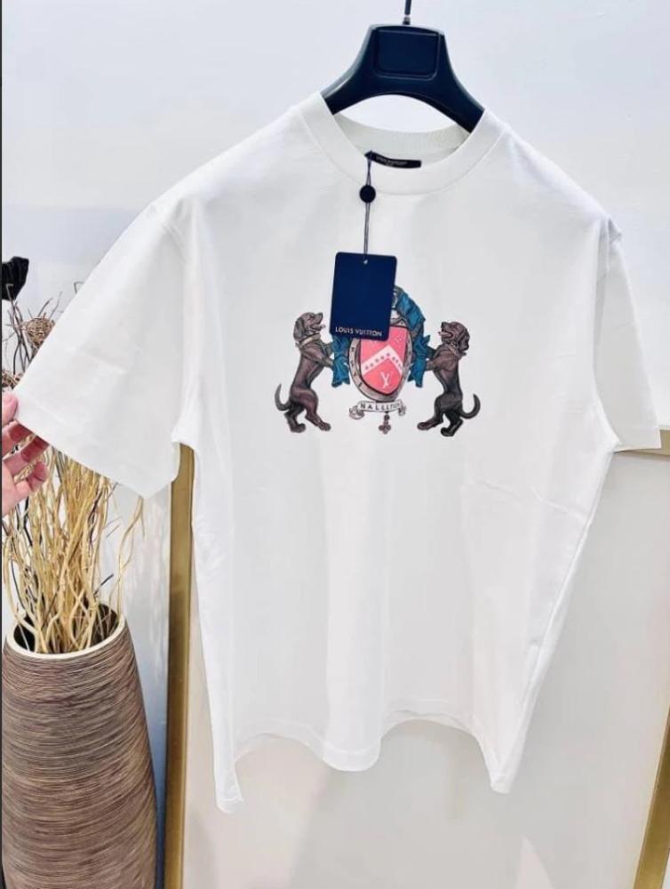 تيشيرت قطني رجالي لويس فيتون بلون أبيض بزخرفة شبايبة
