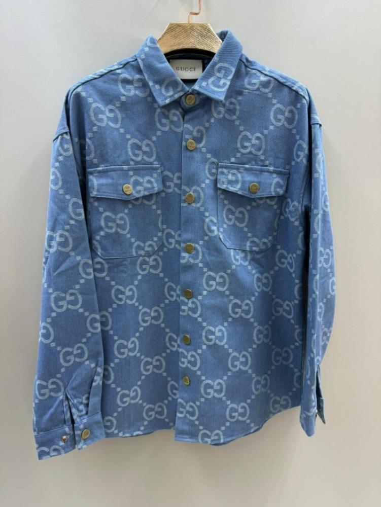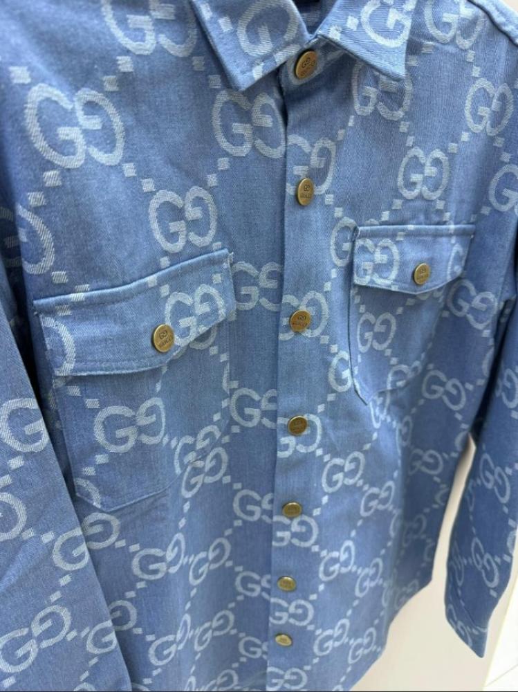 - شعار GG الأيقوني : يتميز القميص بنقشة شعار GG الكلاسيكية التي تغطي سطحه بالكامل، مما يمنحه طابعًا أيقونيًا ويؤكد على هويته الفاخرة.