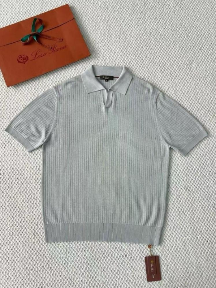 قميص رجالي نصف كم لوروبيانا ياقة بولو لون رمادي محزز
