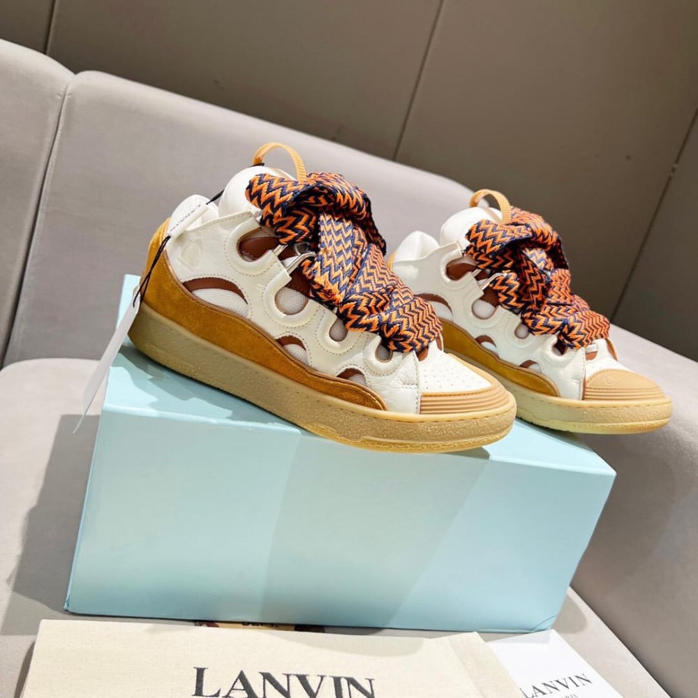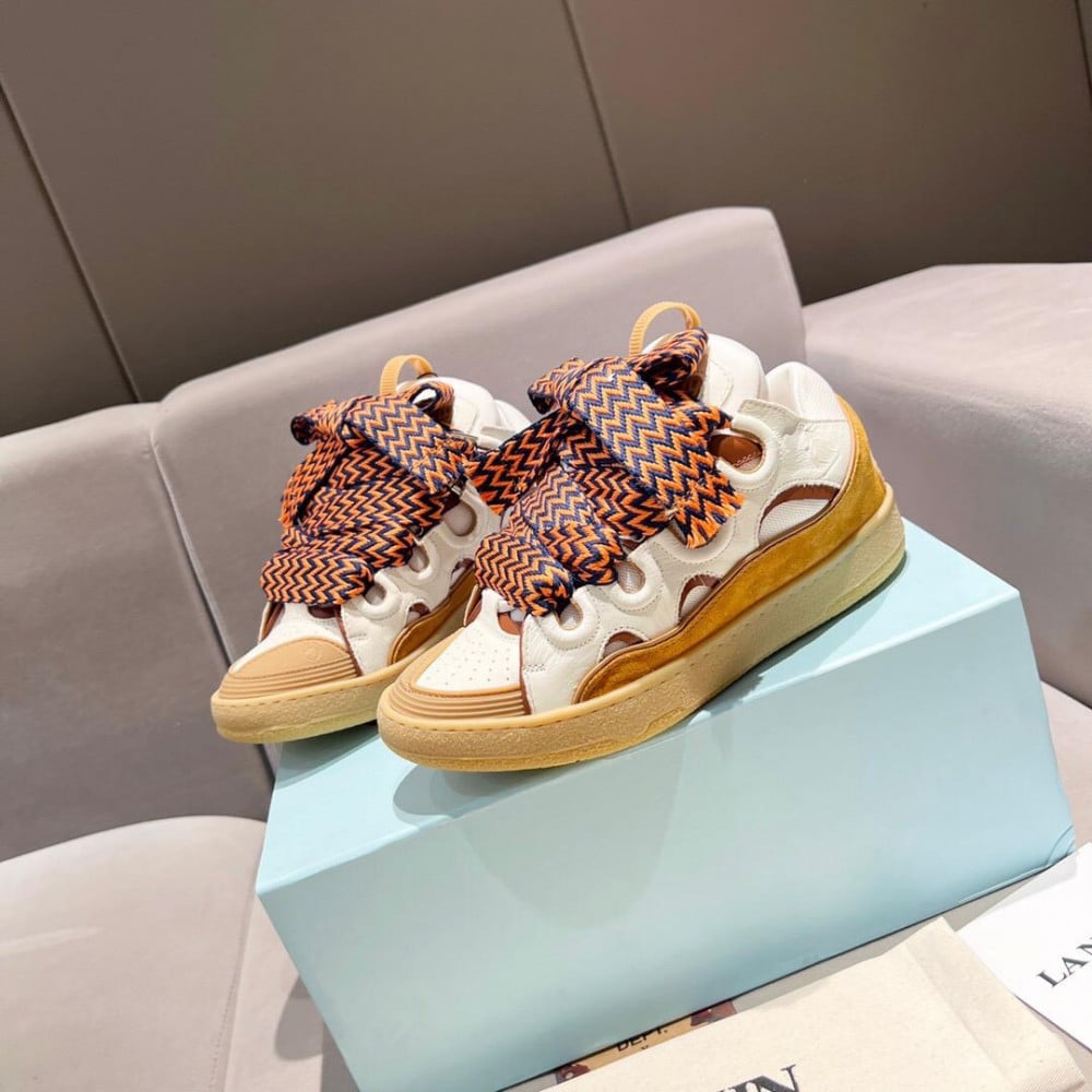 يتميز هذا الزوج من أحذية Curb الرياضية من لانفين بأربطة منقوشة كبيرة الحجم مميزة، ويتميز بتصميم متناقض مغطى بالألواح.