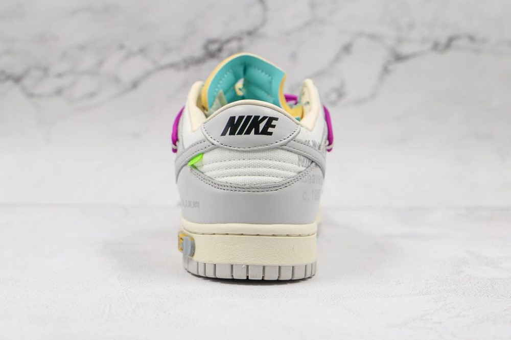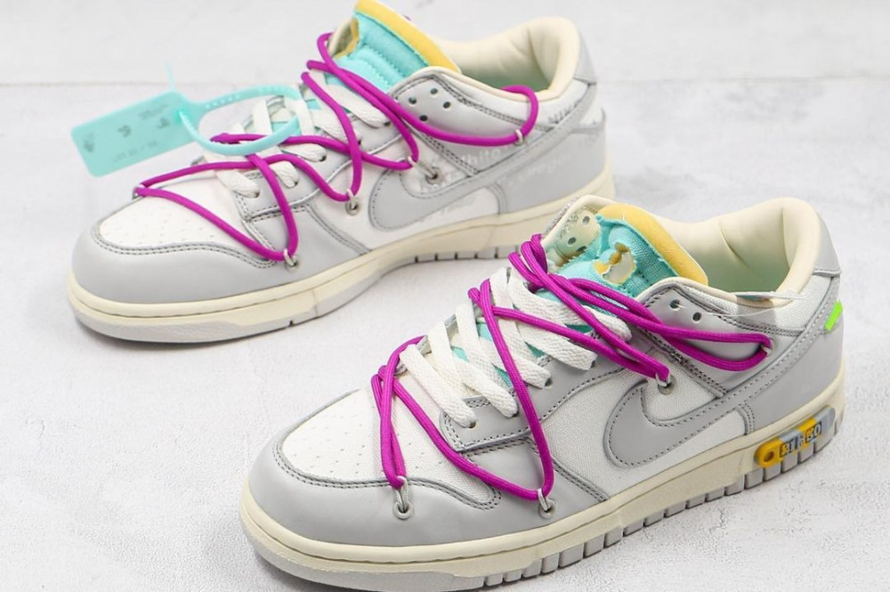 يُعد حذاء أوف-وايت × نايكي لو هذا جزءًا من مجموعة ’دير سمر’، وهو مواصلة متمددة من مجموعة نايكي دنك الأولى للمصمم فيرجل أبلوه من عام 2019. يتميز الحذاء منخفض الرقبة بجزء علوي مصنوع من الجلد الأبيض مع طبقات من القماش باللون الرمادي الفاتح، إلى جانب الزخارف المميزة الخاصة بالمصمم فيرجل أبلوه؛ والتي تتضمن شريط بلاستيكي ونص مطبوع بخط هلفيتيكا. يتزين الحذاء الرياضي بلمسات لونية متباينة على الرباط الثانوي، والشريط البلاستيكي، واللسان الإسفنجي المكشوف، والراية المستطيلة المثبتة على شعار نايكي. اقتصر إصدار هذا الحذاء على 50 زوجًا فقط،