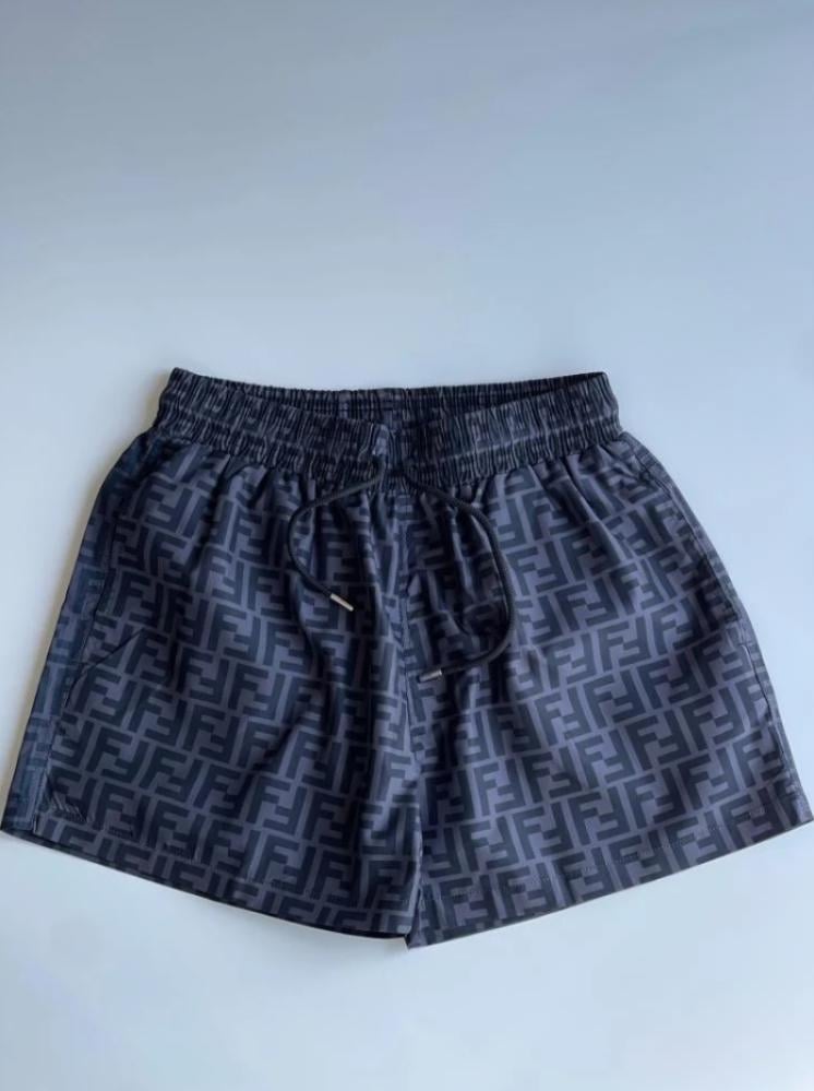 سويم شورت من فيندي للرجال نقشة FF خصر مطاط بلون اسود