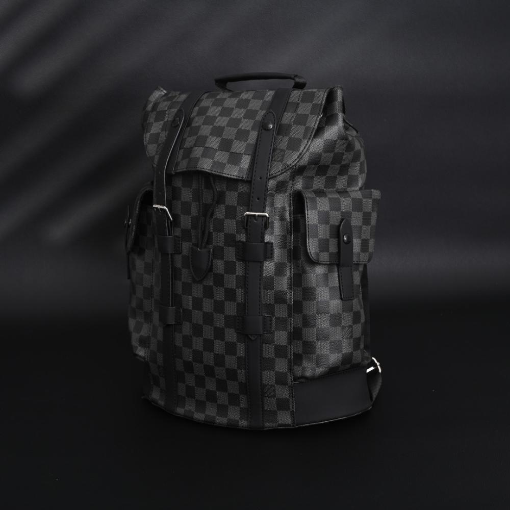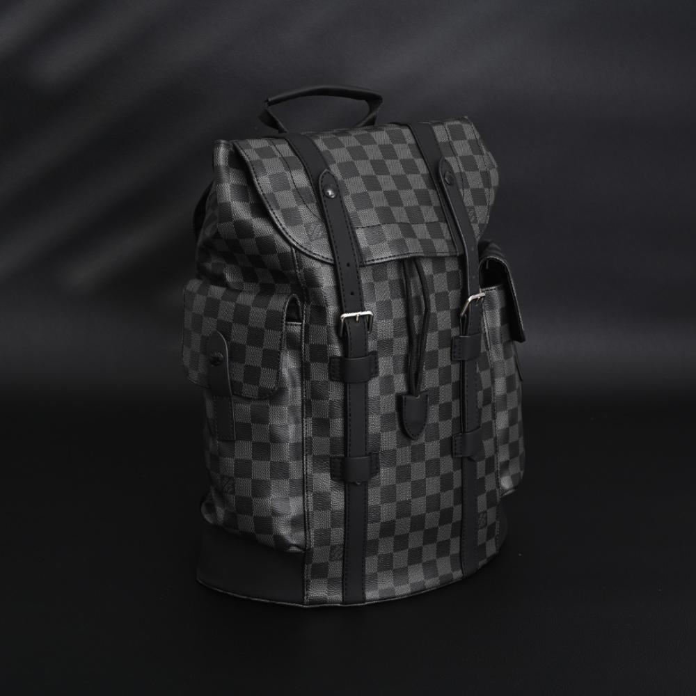 1V CHRISTOPHER graphite checkerboard cowhide backpack