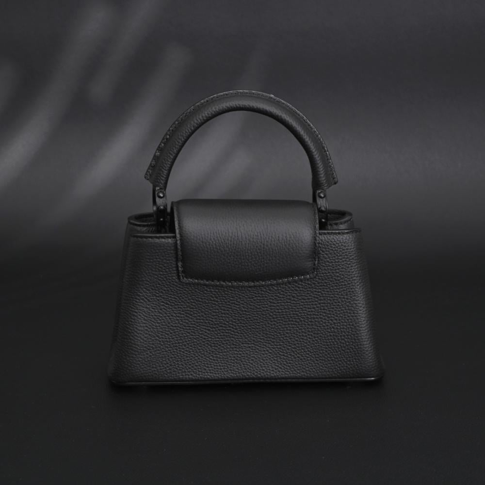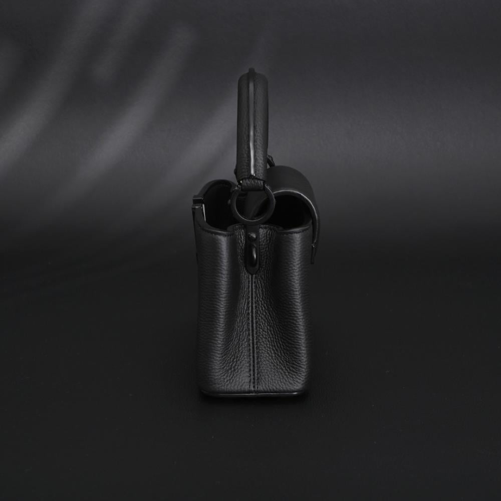 تجسد حقيبة Louis Vuitton Capucines Mini باللون الأسود المطفأ (Matte Black) قمة الأناقة العصرية والذوق الرفيع. هذه الحقيبة ليست مجرد إكسسوار، بل هي قطعة فنية تجمع بين التراث الغني للعلامة التجارية واللمسات الحديثة الجريئة.